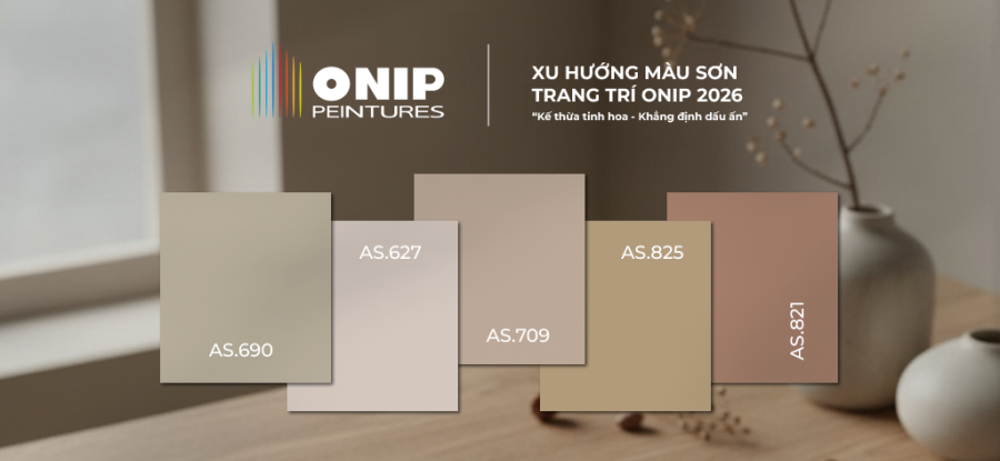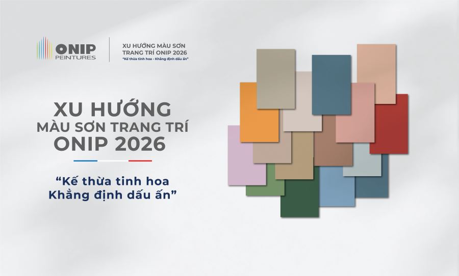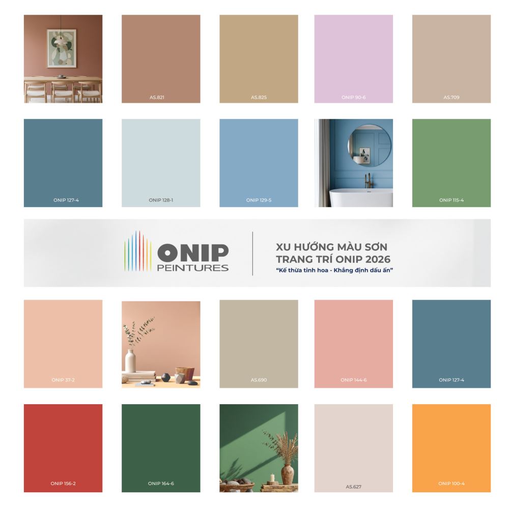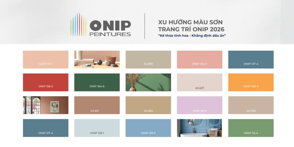 Xuất phát từ ý nghĩa của hành trình này, Sơn Onip giới thiệu Bộ sưu tập màu sơn 2026 có chủ đề "Kế thừa Tinh hoa – Khẳng định Dấu ấn", nhằm gắn kết tinh hoa sắc màu của kiến trúc Á - Âu trong từng ngôi nhà Việt. Màu sơn trang trí Onip 2026 còn là bản nhạc màu sắc hài hòa, đồng điệu giúp ngôi nhà luôn gần gũi với thiên nhiên và tạo cảm giác yên bình cho các thành viên.