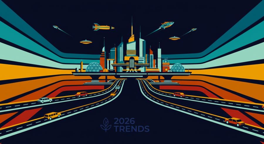 Dựa trên các dự báo từ các chuyên gia thiết kế và các báo cáo xu hướng toàn cầu (như từ Pantone, WGSN, và các agency thiết kế lớn), năm 2026 sẽ là năm giao thoa mạnh mẽ giữa công nghệ cao (AI, AR) và cảm xúc con người (tính thủ công, bền vững).
